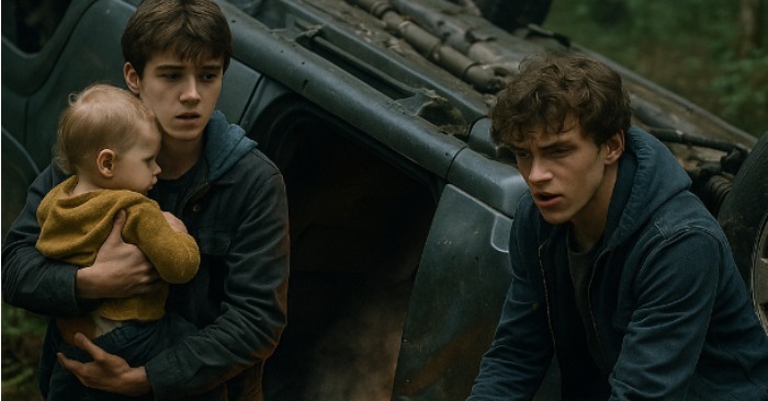 ליאם משך בעדינות את הילד החוצה. הוא בכה, אבל נשם. באותו רגע — ניצוץ מתחת למכסה המנוע, עשן.