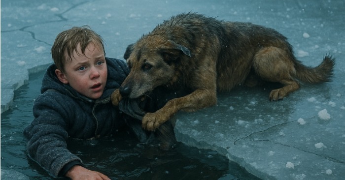 הוא רץ למים, ילל — חזק, נואש — ואז קפץ על הקרח.